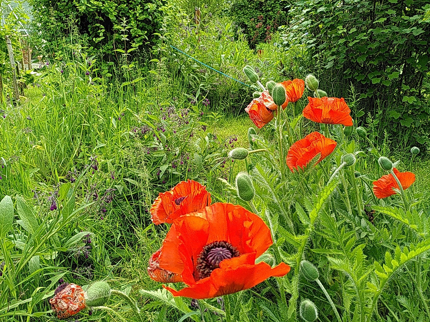 May is the loveliest time of year by far, here in the Half Wild garden. But spring arrived very late this year; April and most of May were cold, wet, gray and unusually North-windy.